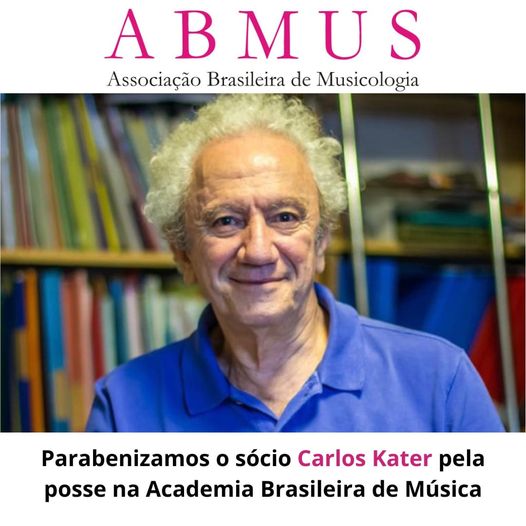 A Associação Brasileira de Musicologia (ABMUS) parabeniza o nosso socio, Prof. Dr. Carlos Kater, pela sua nomeação na Academia Brasileira de Música, cuja posse acontecerá no próximo dia 17 de março, às 18 horas. A Acadêmica Ilza Nogueira fará o discurso de saudação.